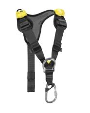 胸式安全带与坐式安全带组合在一起成为防坠落安全带。泡棉肩带肩距较宽,可防止颈部擦伤。如果腰带承重,重量会被分散到肩带上。肩带上带有一个可钩挂止坠挽索连接锁扣的挂点,方便取用锁扣。消防救援装备整体解决方案。
